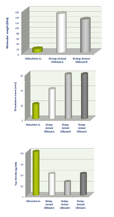 Das pflanzliche Chitosan KiOnutrime-CS ist eine neue Art von Chitosan, das gänzlich pflanzlichen Ursprungs ist und nach der Europäischen Richtlinie bzgl. neuer Nahrungsmittel EC/258/97 Art. 3(4) dem tierischen Chitosan in der Substanz äquivalent ist, in: